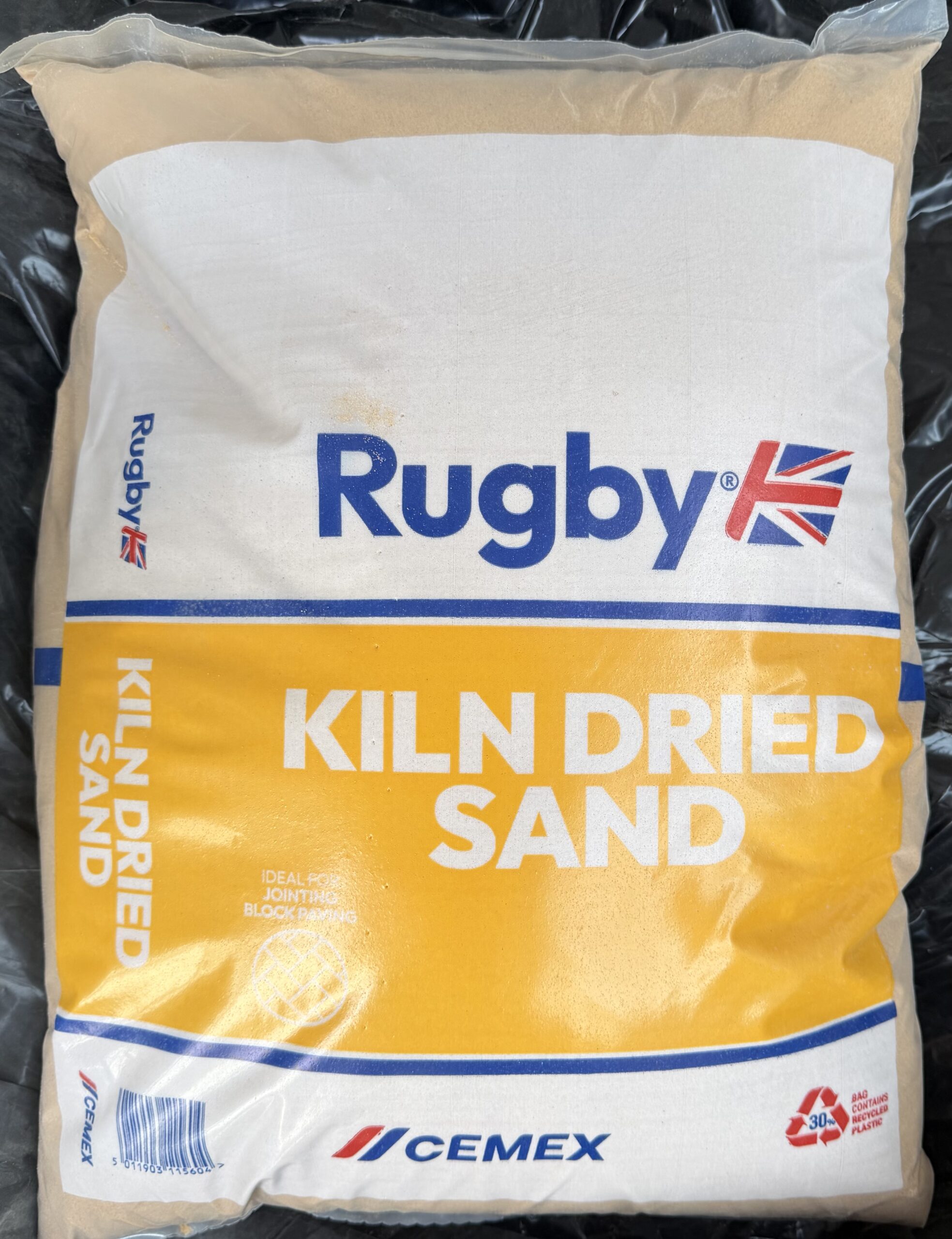 Pavior Sand also known as kiln dry sand or block filling sand is used for filling joints on block paving creating a close and tight bond, The coverage achieved will be dependent on the blocks you are using , This kiln dry sand is a dark orange colour ,